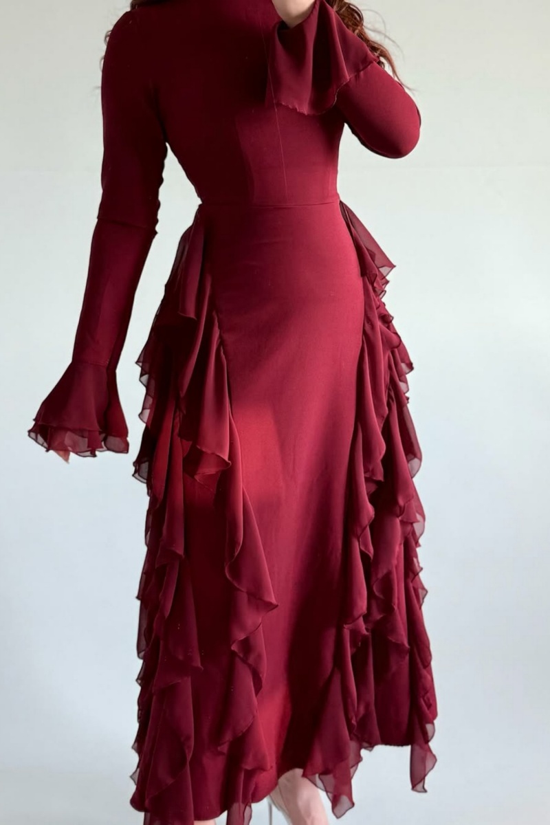 Elevate Your Autumn Wardrobe: The 2025 Essential DressIntroducing the sophisticated long-sleeved dress, meticulously designed for the modern autumn. This piece masterfully blends timeless elegance with contemporary detail, creating a cornerstone for your seasonal wardrobe.Key Features:Refined Elegance:Experience the artful movement of delicate ruffles, strategically placed to add dimension and a touch of modern femininity without excess.Effortless Transition:Crafted from a premium, comfortable fabric, this dress is your versatile companionequally suited for the boardroom, a daytime event, or an intimate evening dinner.Sophisticated Silhouette:The flattering cut and elongated sleeves provide both style and comfort for the cooler season, ensuring a polished and confident presence.2025 Aesthetic:This design embodies the clean lines and intentional details forecast for the upcoming season, positioning you at the forefront of style.Investment in Style:More than a dress, it's a versatile and enduring statement piece designed for repeated wear, offering exceptional value and timeless appeal.Discover your new signature look. Add to Cart to secure this autumn essential.SizeBust (cm/in)Waist (cm/in)Hips (cm/in)Dress Length (cm/in)Sleeve Length (cm/in)S80-96 / 31.5-37.8"66-76 / 26.0-29.9"86-102 / 33.9-40.2"147 / 57.9"69 / 27.2"M84-100 / 33.1-39.4"70-80 / 27.6-31.5"90-106 / 35.4-41.7"148 / 58.3"70 / 27.6"L90-106 / 35.4-41.7"76-86 / 29.9-33.9"96-112 / 37.8-44.1"149 / 58.7"71 / 28.0"