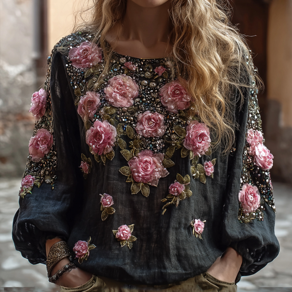 Bohemian Style Casual Embroidered Flower Long-sleeved Shirt