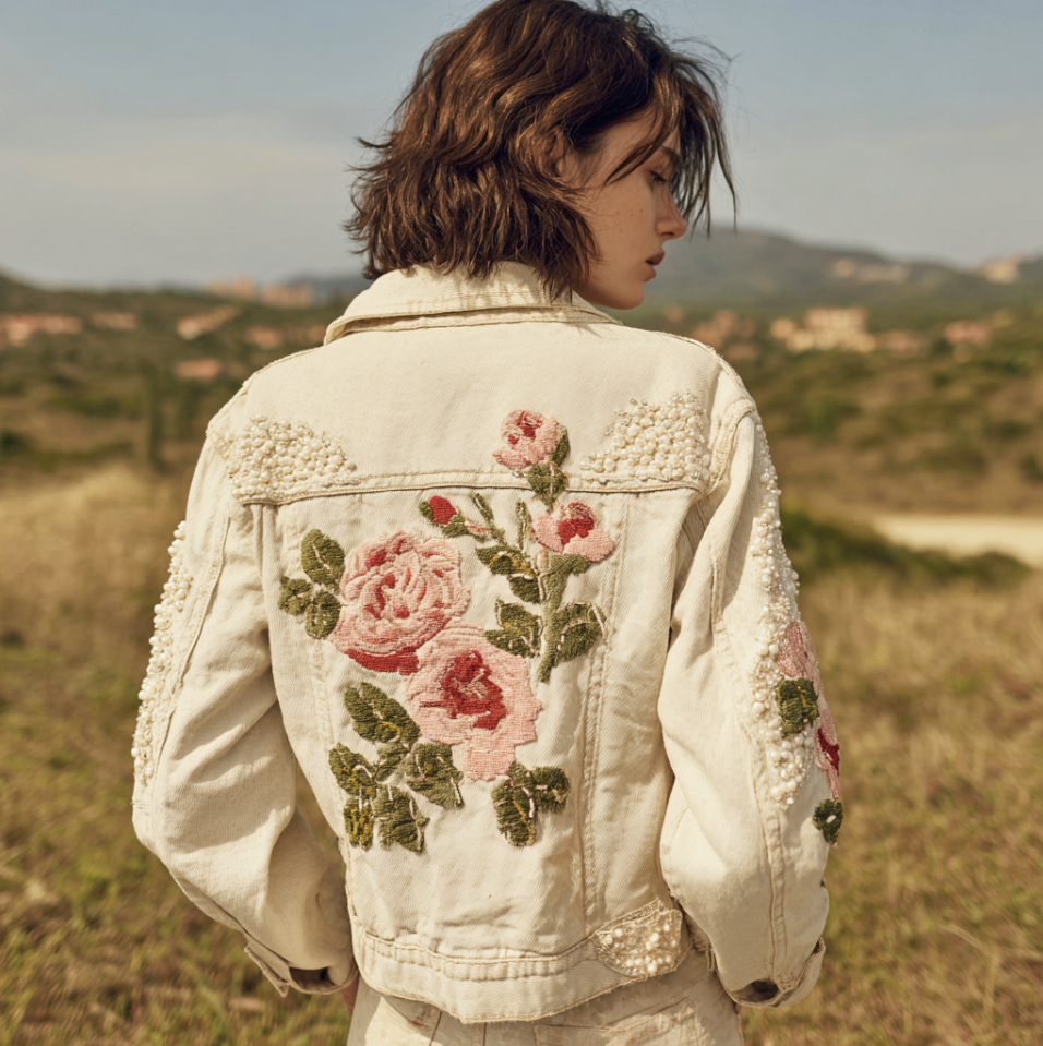 Bohemian Style Rose Embroidery Women's Retro Casual Denim Jacket