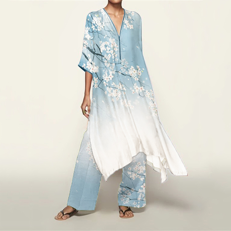 Classy Cherry Blossom Gradient Flowy Kaftan & Pants Set