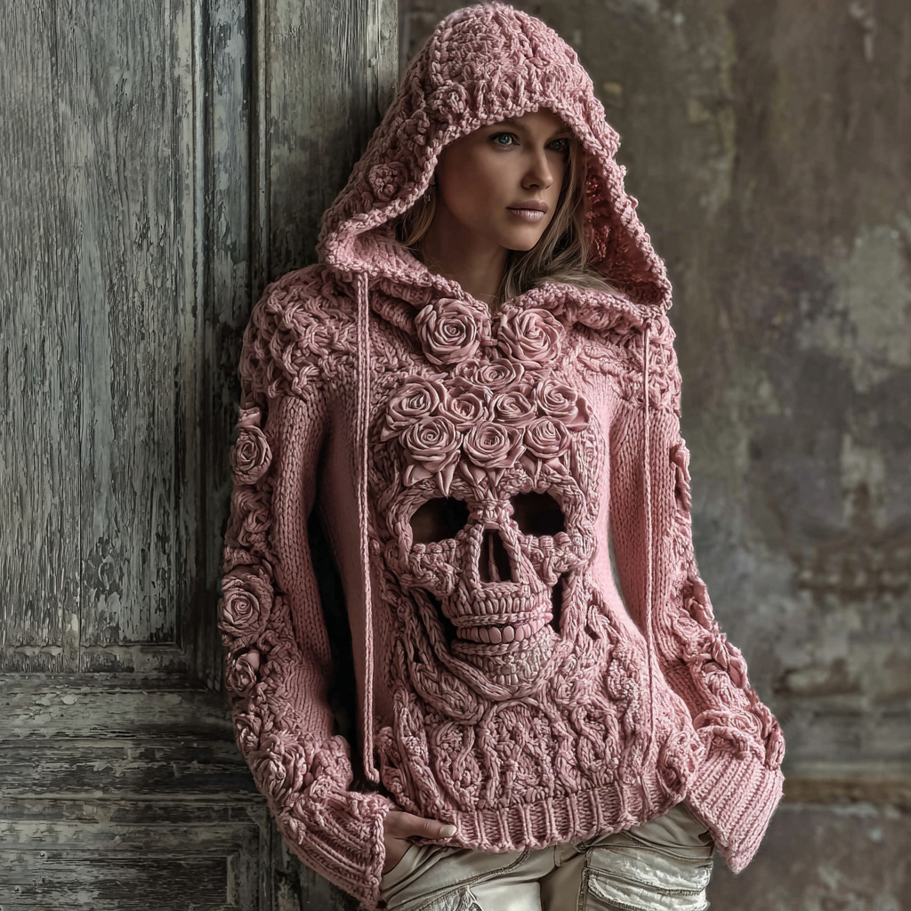 Halloween Pink Rose Skull Gothic Hoodie Sweater
