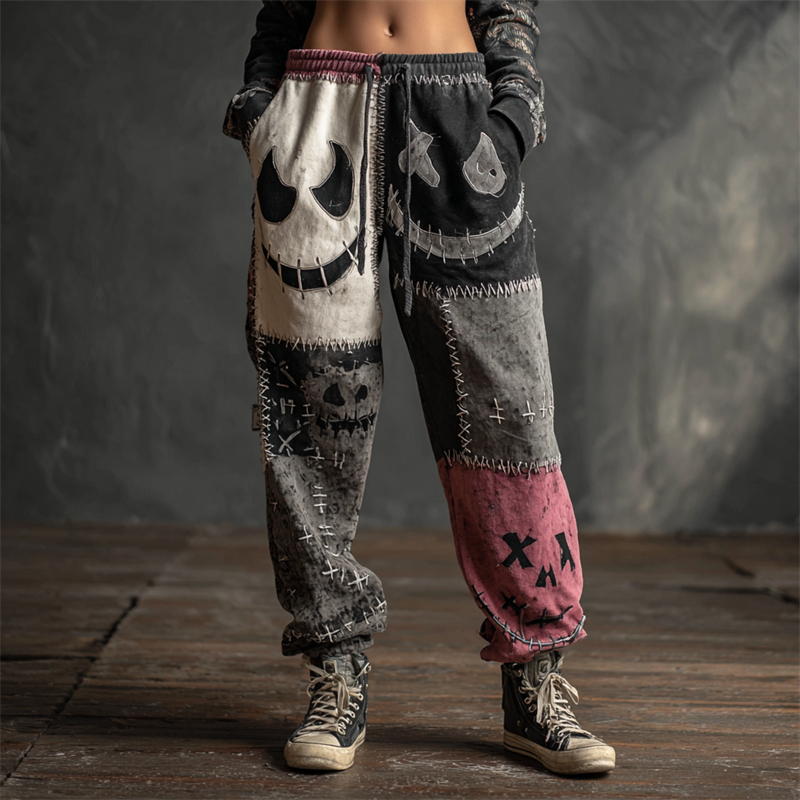Halloween Spooky Faces Colorblock Patchwork Sweatpants