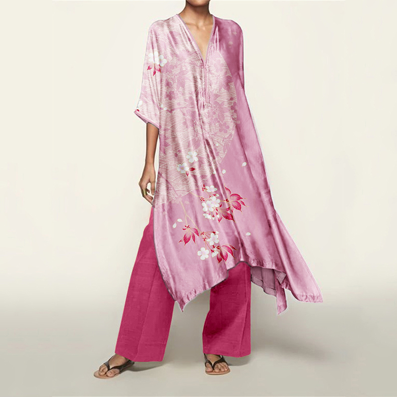 Japanese Cherry Blossom Flowy Kaftan & Pants Set