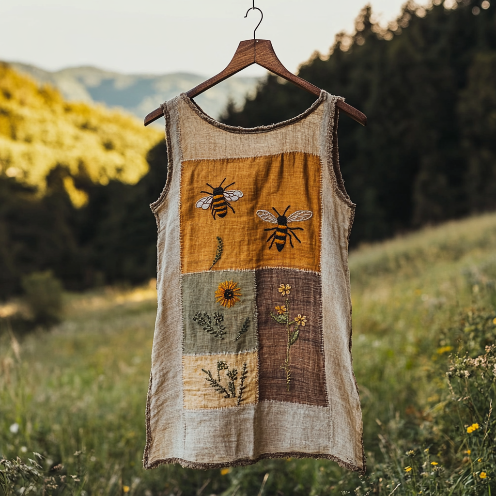 Vintage Bee Wildflowers Patchwork Print Linen Tank Top