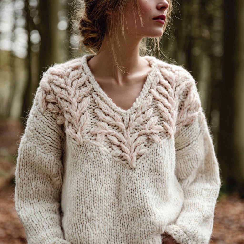 Women's Retro Leaf Knitted Warm V-neck Sweater