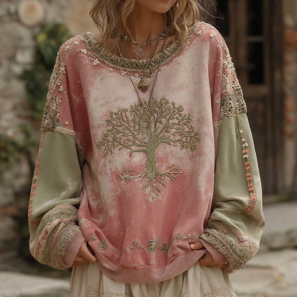 Women's Retro Viking Tree Of Life Stitching Warm Sweatshirt