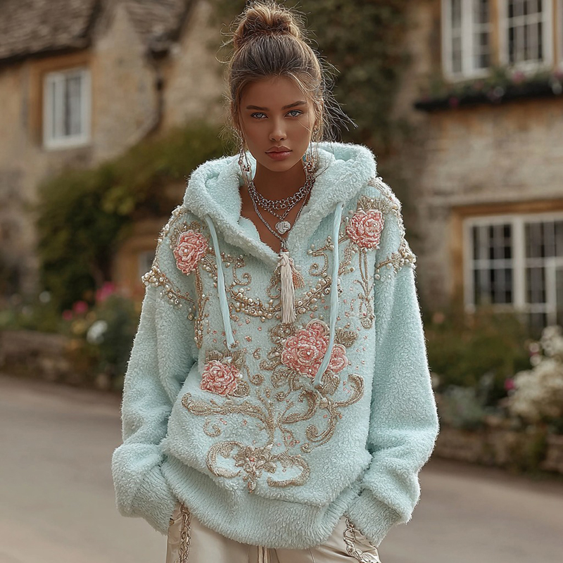 Women's Vintage Bohemian Embroidered Flannel Hoodie